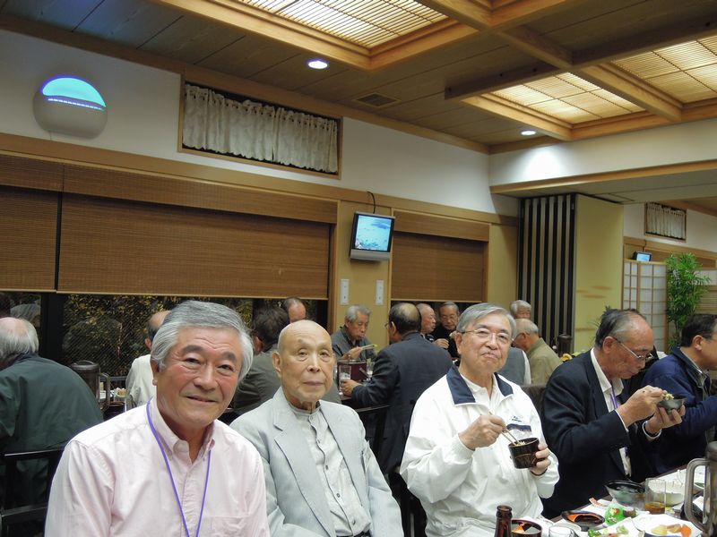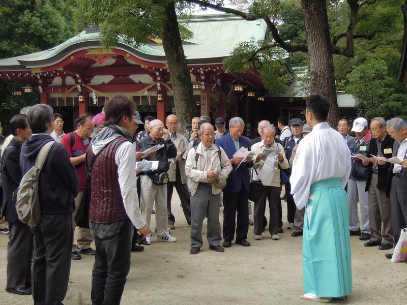 1時00分、4班に分かれて出発。コースは、越谷駅→久伊豆神社→花田苑。ここからはマイクロバス2台に分乗し、それぞれレイクタウン調節池と大相模氏館跡を交互に見学し、懇親会が行われる割烹橋本屋に向かいました。約3時間の行程でしたが、天候にも恵まれ全員が目的地まで無事到着することができました。歴史と新しい文化が交錯する越谷市を訪れ、大変有意義な春高ウォークであったとの感想が多く聞かれました。