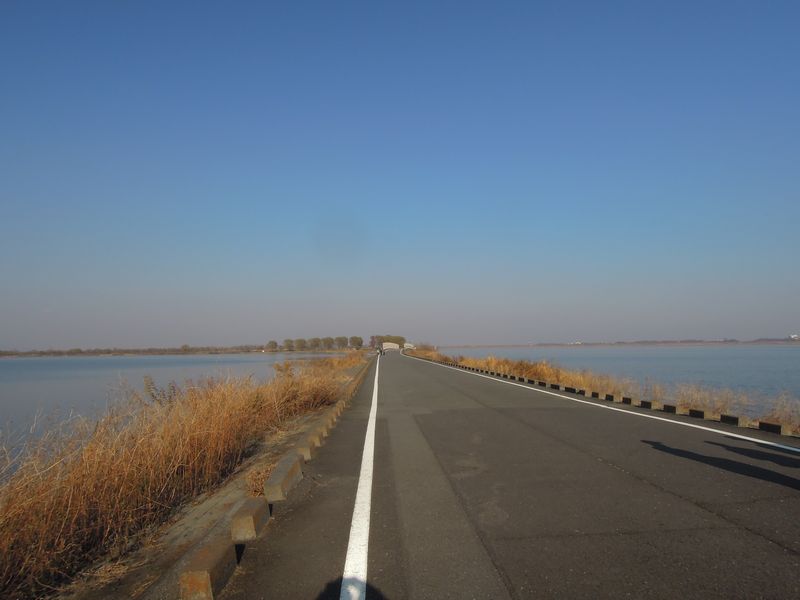 谷中湖中の島への道