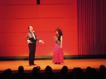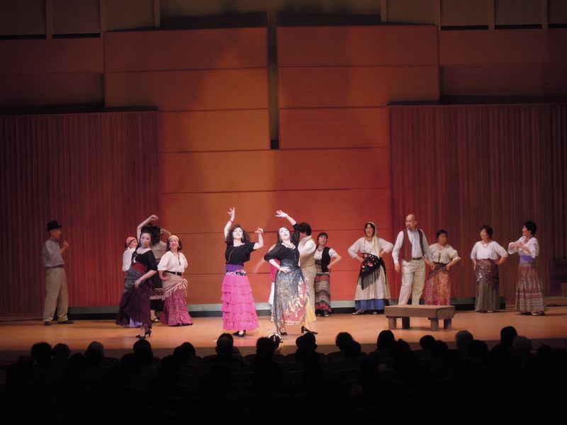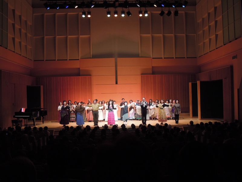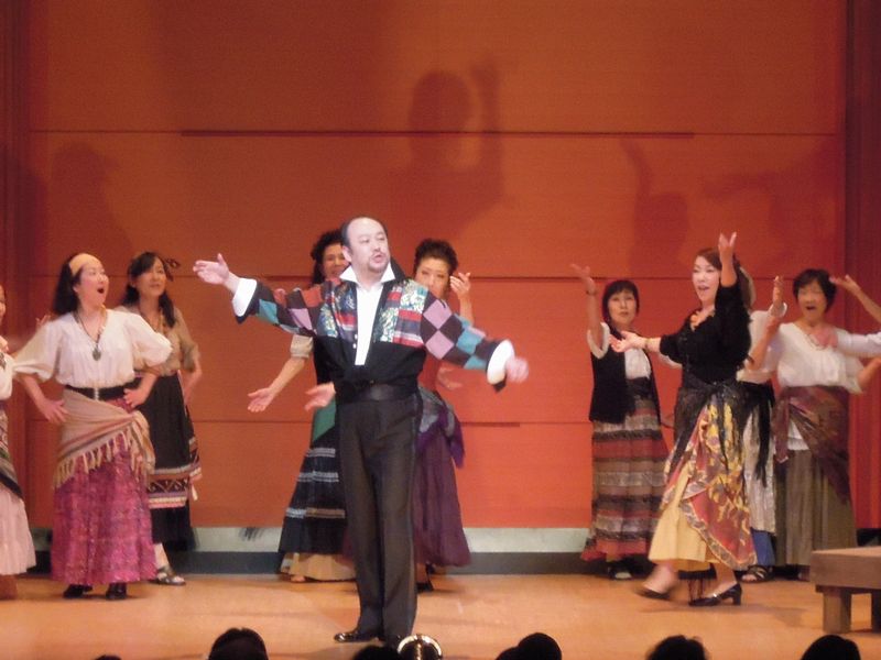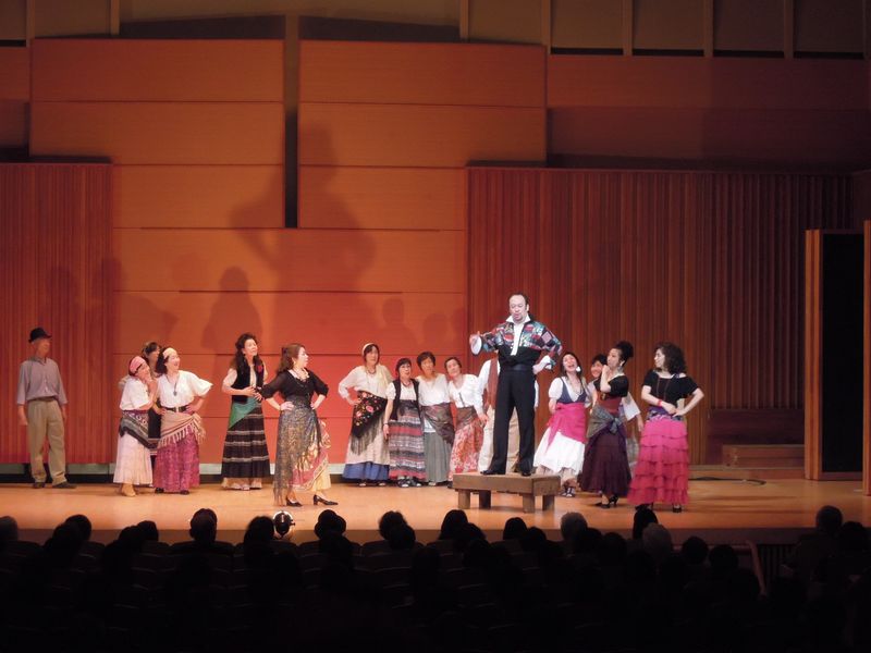 春日部高校同窓会と楽遊倶楽部「プレゴ」共催の、第18回センテニアル・オペラ公演が、4月26日(日)春日部高校音楽ホールで行われました。今年の演目はオペラ「カルメン」ハイライト(日本語上演)です。420名収容のホールが満席となる大盛況の中、観衆を魅了する素晴らしい演技を鑑賞することができました。カーテンコールでは、惜しみない拍手がしばらく鳴り止まず、主催者からは花束の代わりに高級ワインが贈られました。