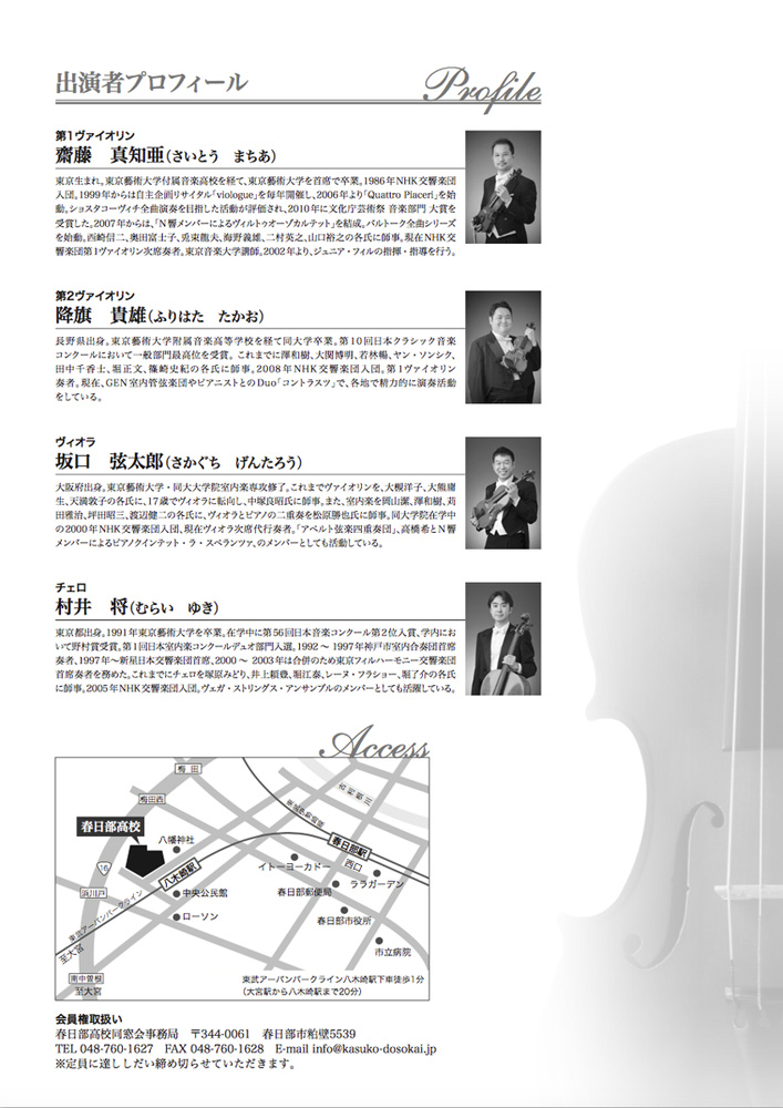 | 公演内容 | NHK交響楽団の精鋭メンバーによる弦楽四重奏 |