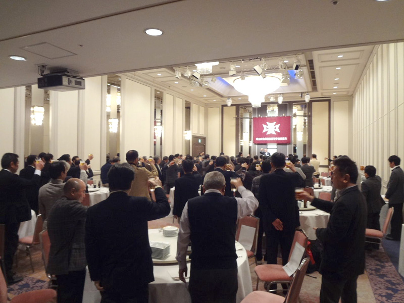 続いて、乾杯に移りました。東武鉄道株式会社専務取締役鉄道事業本部長の牧野君から「埼玉県内には、3つの鉄道事業者がある。西武鉄道、東武鉄道、JR東日本だ。これらの3社の経営陣には、春高の同窓の先輩、後輩がいる。まさに、埼玉県内の鉄道を走らせるために、