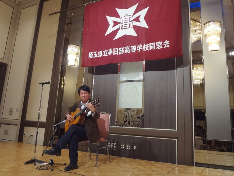 その後、現在、プロギタリストとして活躍している同期の竹内永和君に、クラシックギターの演奏を披露していただきました。2年前の同期会でも演奏をしていただき、今回で2回目です。とても期待し楽しみにしていたイベントです。演奏曲は「禁じられた遊び」、「アルハンブラの思い出」、ビートルズナンバーの「Let it be」等、お馴染みの曲ばかり。皆、美しく奏でられた透明感溢れるギターの音色を五感で感じ、うっとりしながら聞き入っていました。本当に素晴らしい。心が洗われた爽やかな気持ちになりました。歓談や公演の合間には、柿沼君と増田君が写真担当として、走り回ってくれました。感謝です。