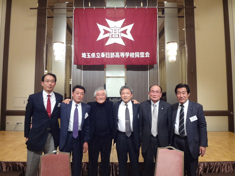 続いて、母校の現校長の工藤君からご挨拶をいただきました。工藤君は母校の第32代校長。私たちの同期生が母校の校長を勤めていることは、大変名誉なことです。工藤校長からは、「春日部高校は、屈指の進学校であるが故、他の進学校と比べられることが多い。その中で、現役生徒は文武両方に頑張っている。大学進学の実績も大変良くなってきた。また、大学側からは、春高生は大学進学後の伸びしろが大きいと、評価も高い。」等のお話をいただきました。