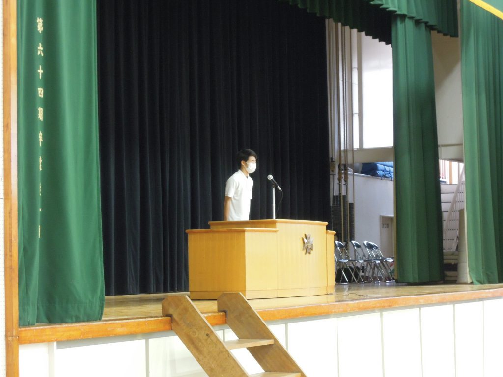 表彰式では、物理部、水泳部、硬式野球部、吹奏楽部への表彰紹介がありました。