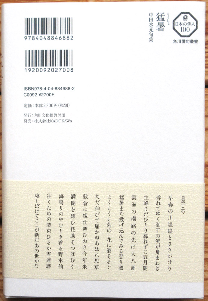 中田水光氏(本名 中田雅敏 高16回)から「句集 猛暑 角川俳句叢書 日本の俳人100」の著書が、同窓会室に寄贈されましたのでご紹介します。