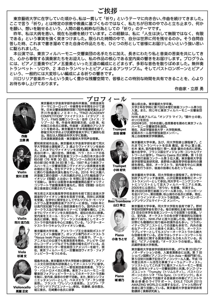 川口リリア音楽ホールという美しく豊かな残響空間で、皆様とこの特別な時間を共有できることを、心よりお待ち申し上げております。