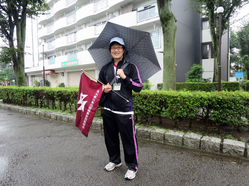 朝からの雨空が集合時間まぎわに一段と激しさを増し、一時はコース変更も含め開催すら危ぶまれる状況でしたが、出発時には雨もほぼ上がり、予定どおりの日程で行うことができました。